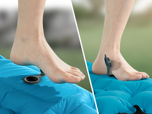 Upgrade your camping experience with sleeping pad, featuring a foot pump for quick inflation.