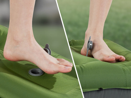 Upgrade your camping experience with sleeping pad, featuring a foot pump for quick inflation.