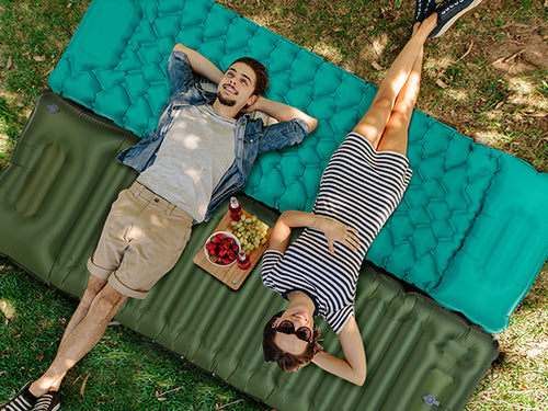 Enhance your camping comfort with snap-fastener equipped sleeping pad, convertible to a double bed